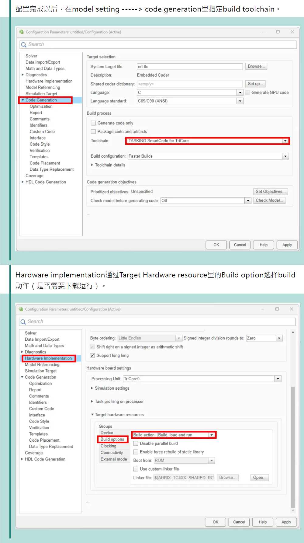 英飞凌AURIX™ TC4x系列微控制器嵌入式代码支持包使您能够使用Simulink为英飞凌32位TriCore™ TC1.8 AURIX™ TC4x系列微控制器设计实时应用程序,以及英飞凌AURIX™ TC4x系列系统级芯片块集支持包使您能够使用Simulink为英飞凌AURIX™ TC4x系列PPU设计实时应用程序。支持包包含了外设和IO模块诸如 Digital IO, TMADC, DSADC, PWM, Encoder, Resolver, FCC, SENT, CDSP, QSPI and Hardware Interrupts。在MATLAB 2024a版本里,它允许您使用Green Hills®, TASKING® SmartCode, HighTec LLVM和Synopsys® MetaWare等第三方编译器编译和运行代码,和Synopsys Virtualizer Development Kit第三方软体进行模拟测试。