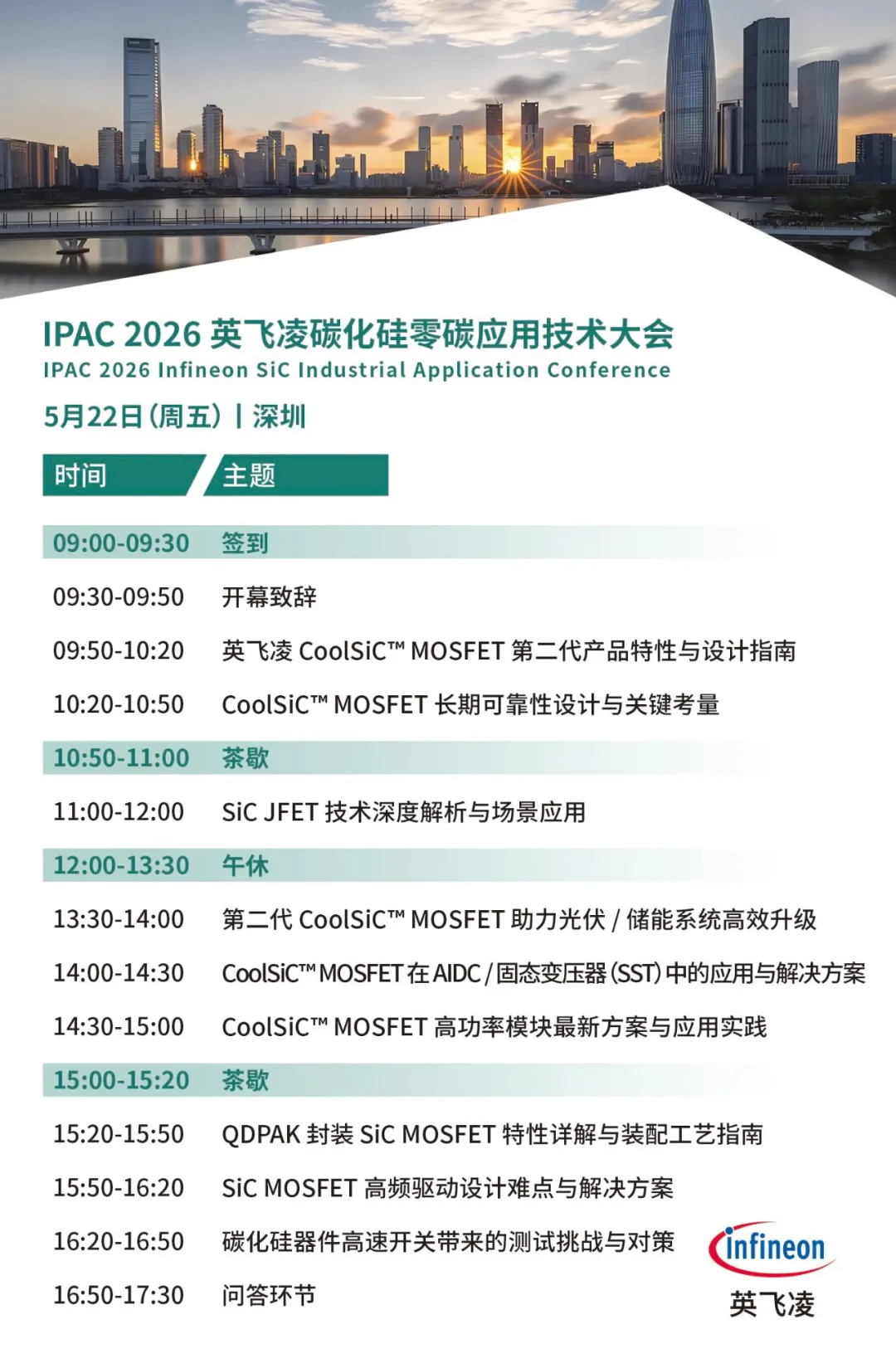 为进一步聚焦零碳技术前沿,英飞凌将于2026年首次推出两大主题技术大会,诚邀您共襄盛举: