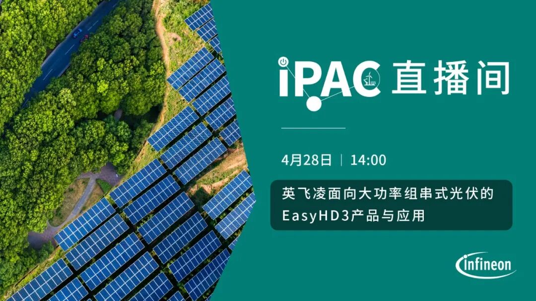 2026年4月28日,IPAC直播间将为您介绍英飞凌面向组串式光伏的全新EasyHD3系列产品。请大家锁定频道,赶紧报名哦!