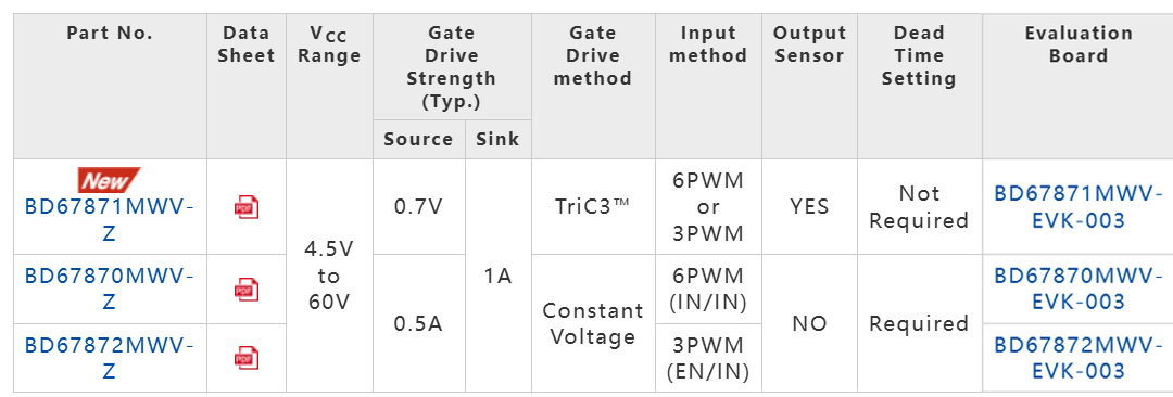 另外,ROHM还推出了与新产品采用相同封装和引脚配置的恒压驱动通用电机驱动器(BD67870MWV-Z、BD67872MWV-Z)。从通用型到此次采用TriC3™技术的高附加值型产品,ROHM可提供满足客户多样化需求的丰富产品群,未来ROHM将继续致力于提升电机效率、助力应用产品增强功能、提升性能并降低能耗。
