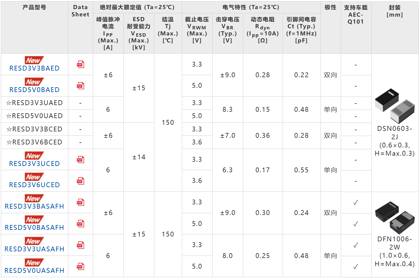 中国上海,2026年4月2日——全球知名半导体制造商ROHM(总部位于日本京都市)今日宣布,推出兼具业界超低动态电阻(Rdyn)*1和超低电容特性的ESD(静电放电)保护二极管*2“RESDxVx系列”。该系列产品适用于需要高速数据传输的众多应用领域。